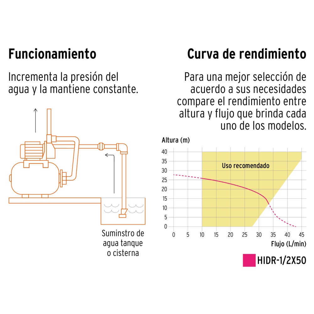 • Incrementa la presión de agua o la mantiene constante
